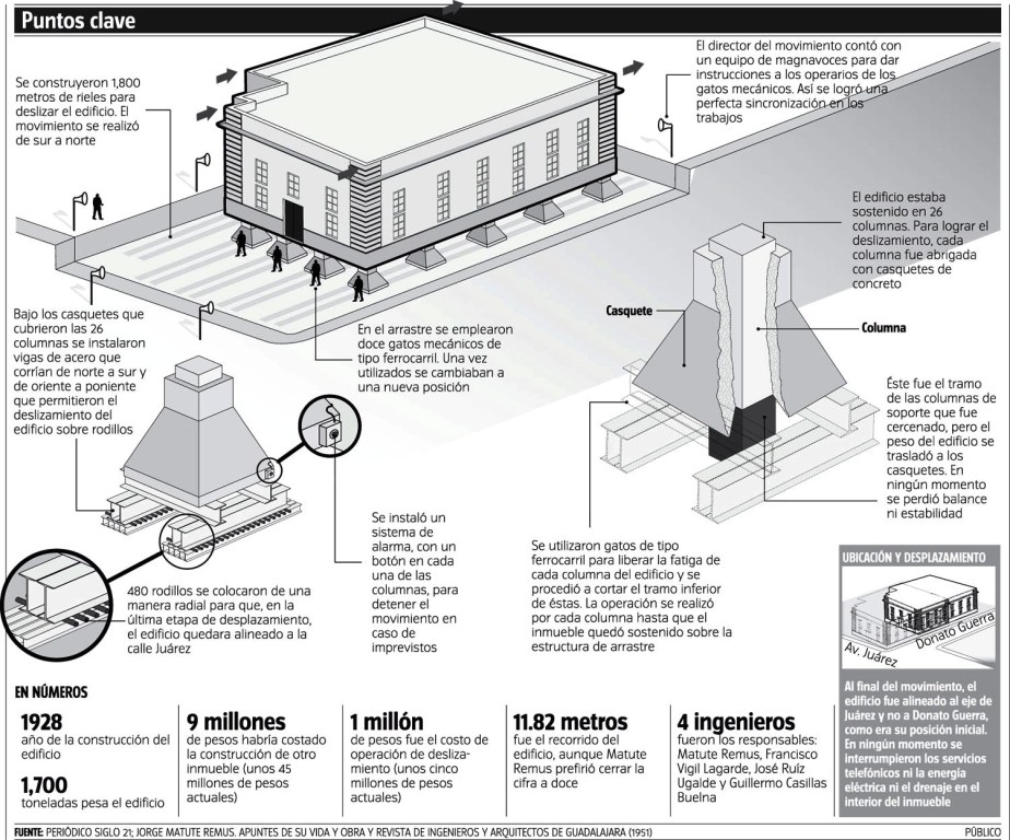 Pues bien, su idea era esta: «Bueno esto es como mover un carro de ferrocarril, tenemos que montar el edificio en unos rieles y empujarlo».Y fue lo que se hizo.