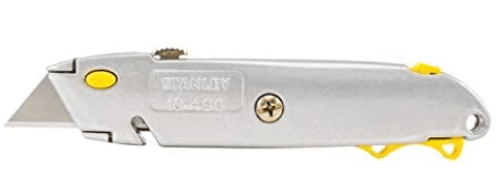 Un cuchillo multiusos de buena calidad (cuchillo Stanley) es indispensable para muchas cosas diferentes. Sus cuchillas afiladas y reemplazables, ideales para cortar cosas como madera, cartón u otros materiales como vinilo o plástico.