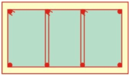 El siguiente paso es el estribo de cuatro patas, que generalmente consta de dos estribos superpuestos que no envuelven todas las varillas. Por ejemplo, si tiene ocho varillas en dos filas de cuatro, los dos estribos superpuestos envolverán seis varillas cada uno, y ambos envolverán las cuatro en el centro.