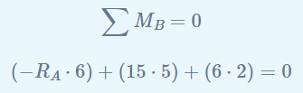 Y la suma de los momentos respecto de cualquier punto debe ser igual a cero. Si elegimos tomar los momentos sobre el Punto B obtenemos lo siguiente: