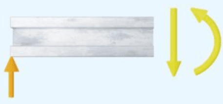 Las tensiones normales serán de tracción en un lado de la sección transversal y de compresión en el otro. Si la viga está flexionada, la parte superior de la viga se acortará y, por lo tanto, las fuerzas normales que actúan en la parte superior serán de compresión. La parte inferior de la viga se alargará y, por lo tanto, las fuerzas normales que actúan en la parte inferior de la viga serán de tracción.